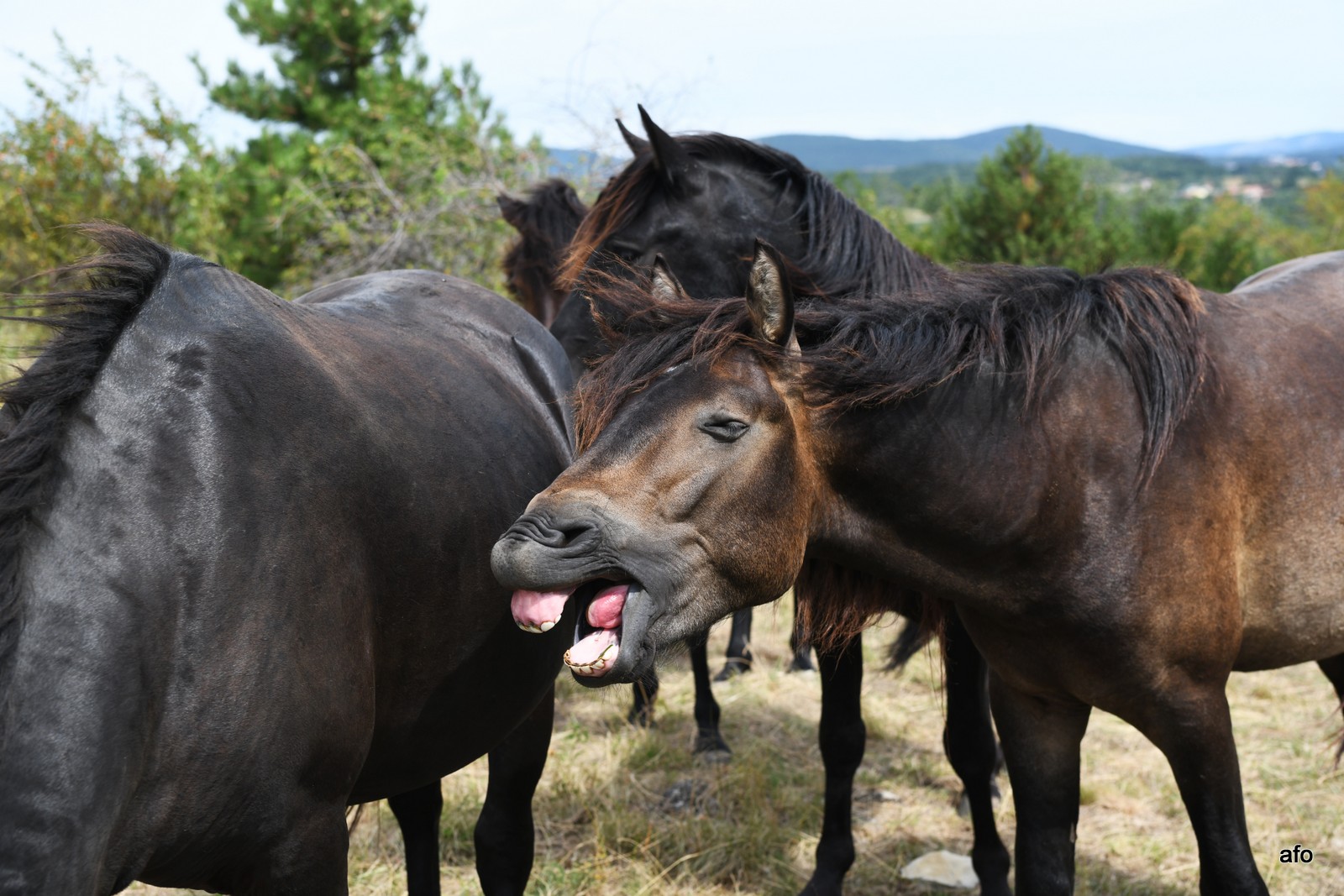 Ob robu slovenske planinske poti, na petrinjskem krasu, je žrebetišče bosanskih planinskih konj. To je pašnik, kjer so nastanjeni mladi žrebci, stari od dveh do štirih let. Jeseni 2021 se je radovednim mladim žrebcem, vajenim družbe človeka, s fotografskimi objektivom približal naš fotograf Branko Klančar.
